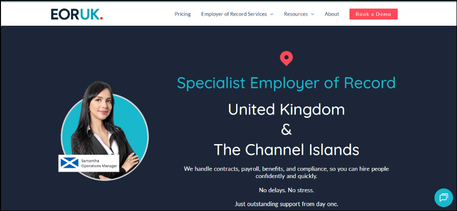 - Comprehensive EOR support for UK businesses - payroll, benefits, contract, compliance, and employee support.